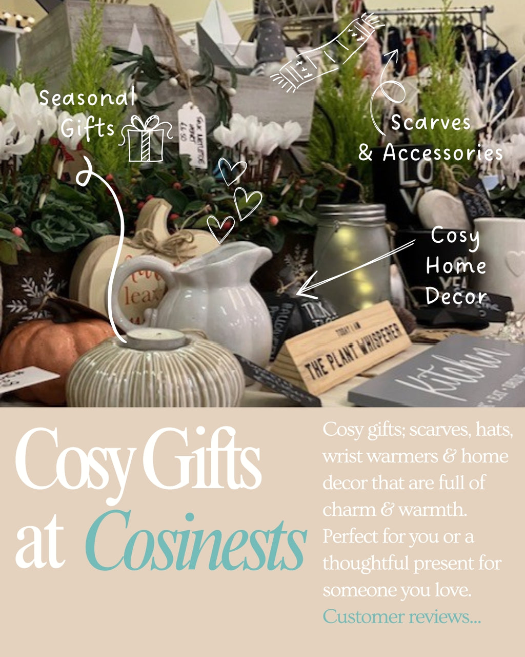 Cosinests is an online shop run by small business owner Jo in the Kent countryside. Her passion for all things cosy drives her dream to make the world a kind & caring place to be. Specialising in thoughtfully curated cosy gifts, accessories and home décor designed to warm hearts and homes all year round, Cosinests delivers;