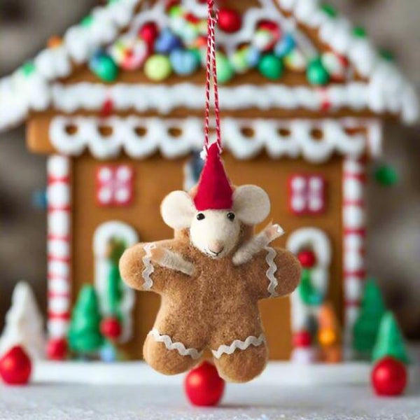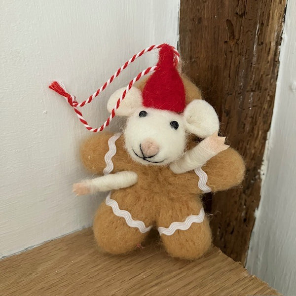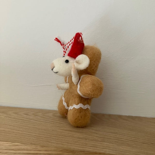 • Adorable felt Mouse in a soft gingerbread suit wearing a cute red Christmas hat
