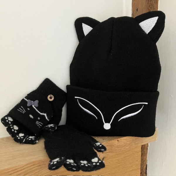 Kitty Mittens Black