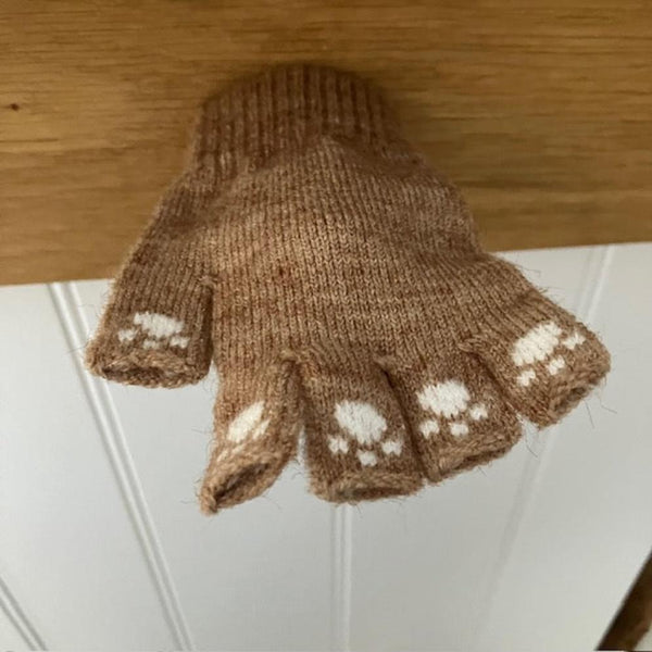 The Kitty Mittens Brown are wonderful fingerless gloves with overlapping finger warmers that are ideal for toddlers and small children