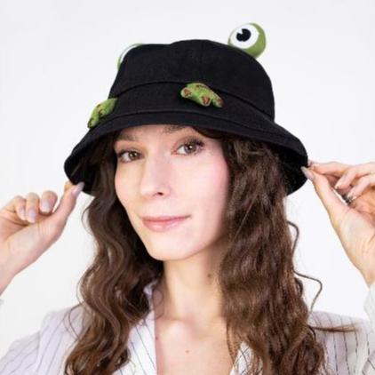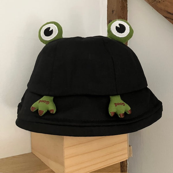 The Polly Frog Bucket Hat Black is a super fun and cute hat for kids and adults alike