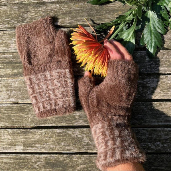 The Tess Fingerless Gloves Brown are fabulously soft, fluffy and incredibly stylish