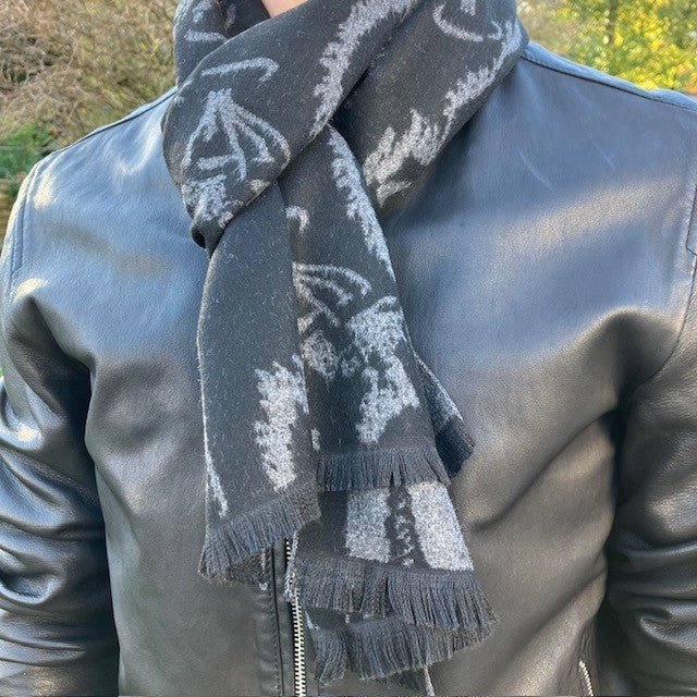 The Botanic Scarf in Black & Grey is the perfect accessory for the modern man, effortlessly stylish and wonderfully warm